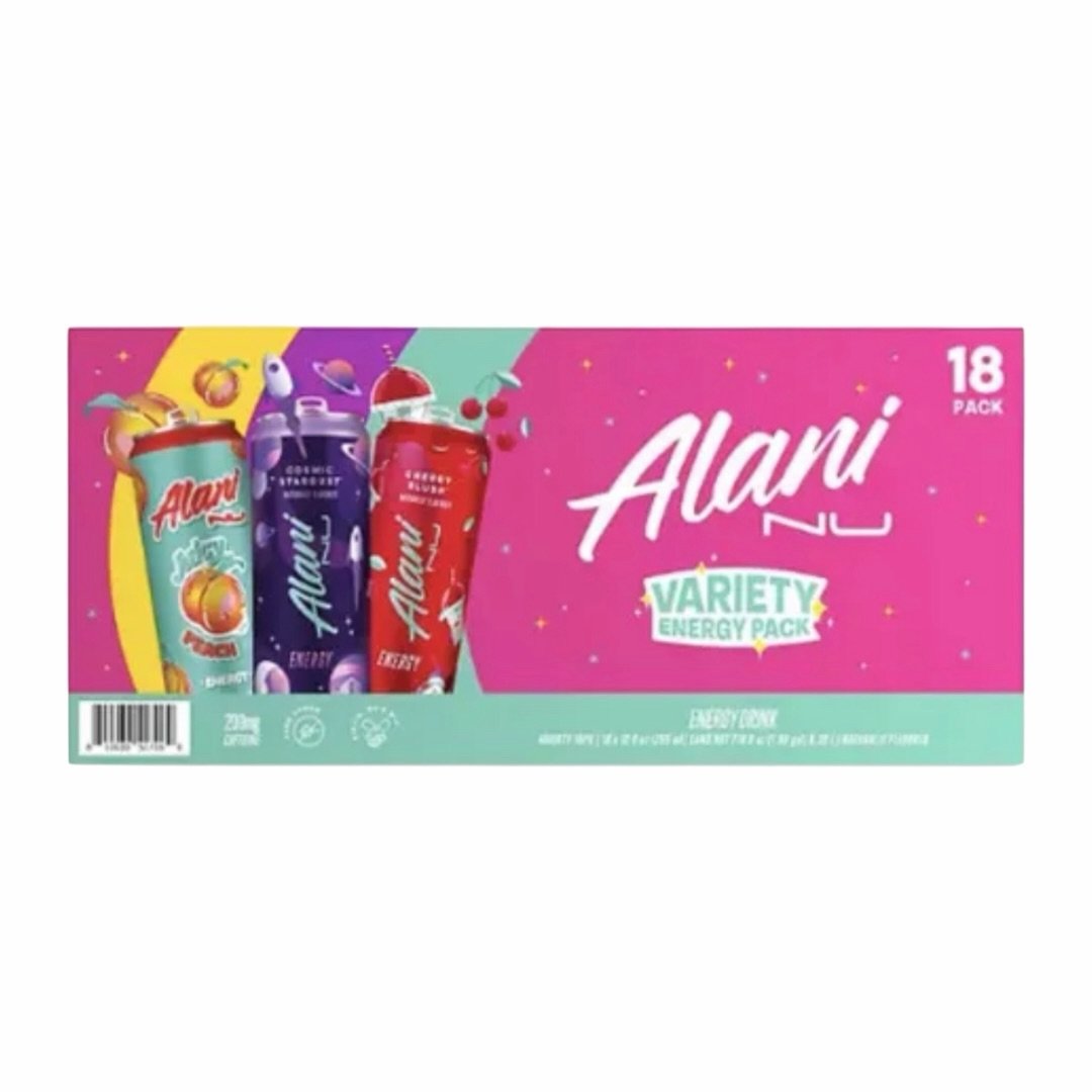 Para los que quieren descubrir el universo de sabores de Alani Nu sin comprometerse con un solo sabor, el Variety Pack de 18 latas es la mejor opción. Este pack incluye los sabores más populares de la línea — Cherry Slush, Cosmic Stardust y Juicy Peach — en seis latas de cada uno, para que puedas rotar sabores durante toda la semana y descubrir cuál se convierte en tu favorito. Disponible en Amazon México y en nuestra tienda.