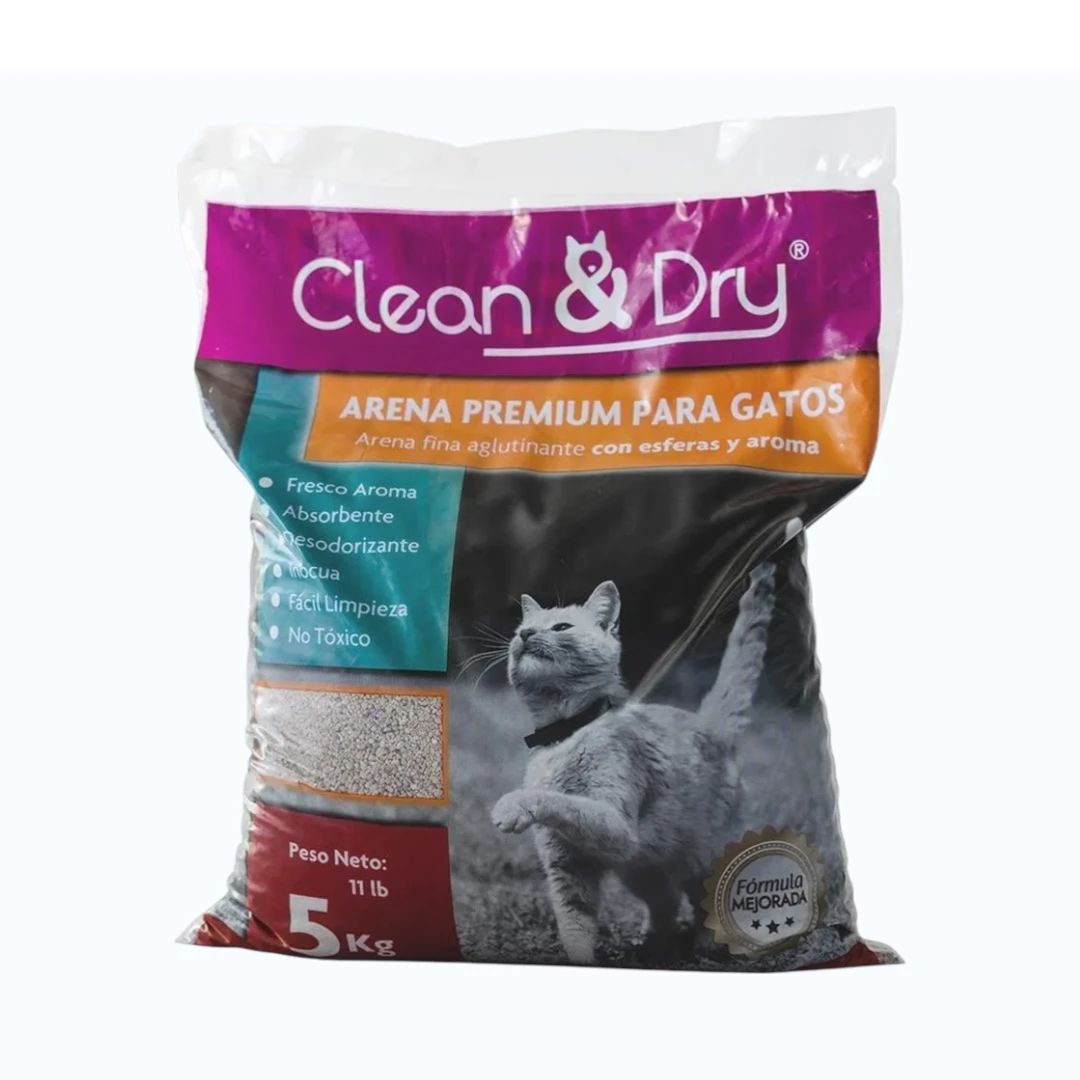 La arena para gato Clean & Dry Aroma Fresco de 5 kg ofrece un excelente equilibrio entre rendimiento, frescura y economía. Diseñada para absorber eficazmente la humedad y neutralizar los olores, mantiene la bandeja de tu gato limpia por más tiempo y con un aroma fresco y agradable.