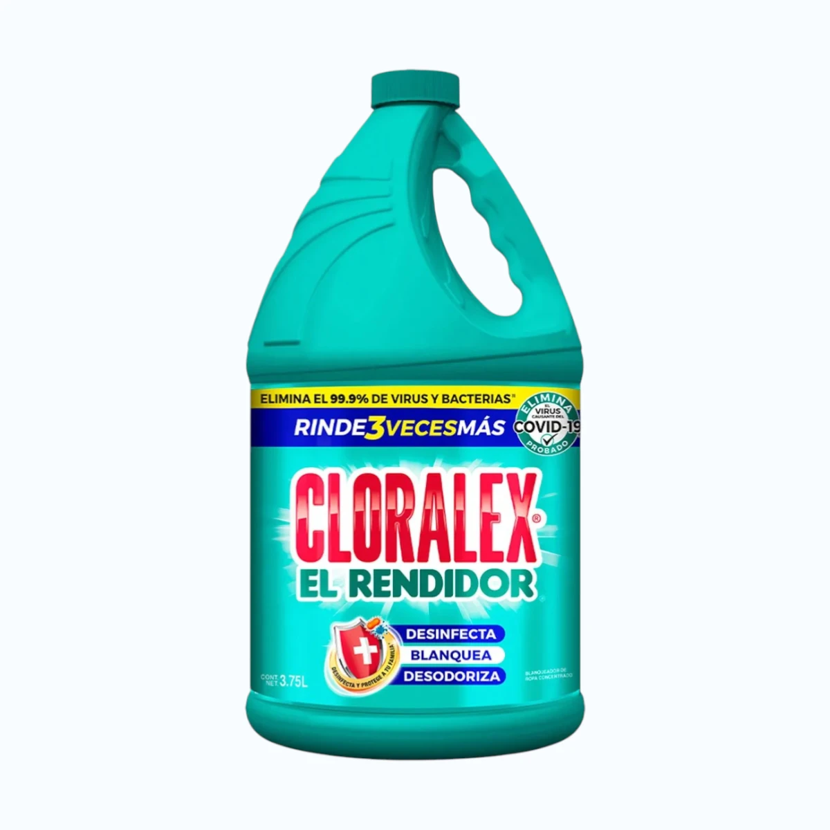 Si estás buscando el Blanqueador Desinfectante Cloralex El Rendidor 3.75 L, encontraste exactamente lo que necesitas. El Blanqueador Desinfectante Cloralex El Rendidor 3.75 L es la opción más potente, más económica y más completa para quienes quieren la desinfección y el blanqueado más efectivos disponibles en el mercado en el formato más generoso y rendidor para el hogar. Con 3.75 litros de blanqueador desinfectante de máxima potencia, el Cloralex El Rendidor garantiza semanas de limpieza, desinfección y blanqueado en todos los rincones de tu hogar al mejor precio posible.