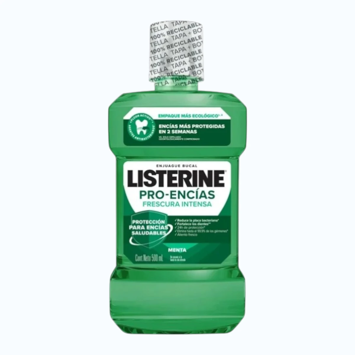 Adquiere el Enjuague Bucal Listerine Pro-Encías Menta 500 ml en la Central de Abastos CDMX por solo $90, el mejor precio para compras al por mayor.