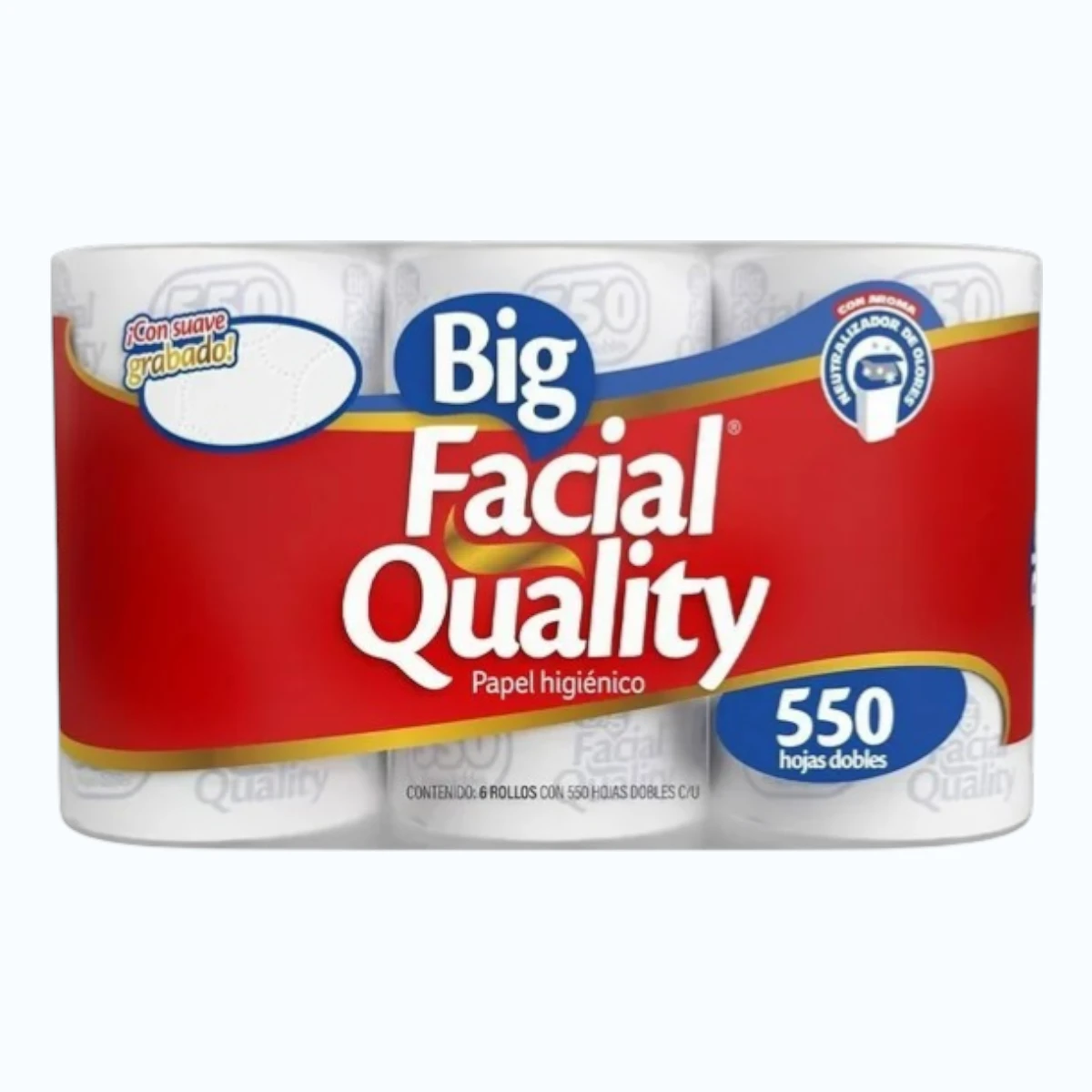 Papel Higiénico Big Facial Quality 6 Rollos de 550 Hojas Dobles