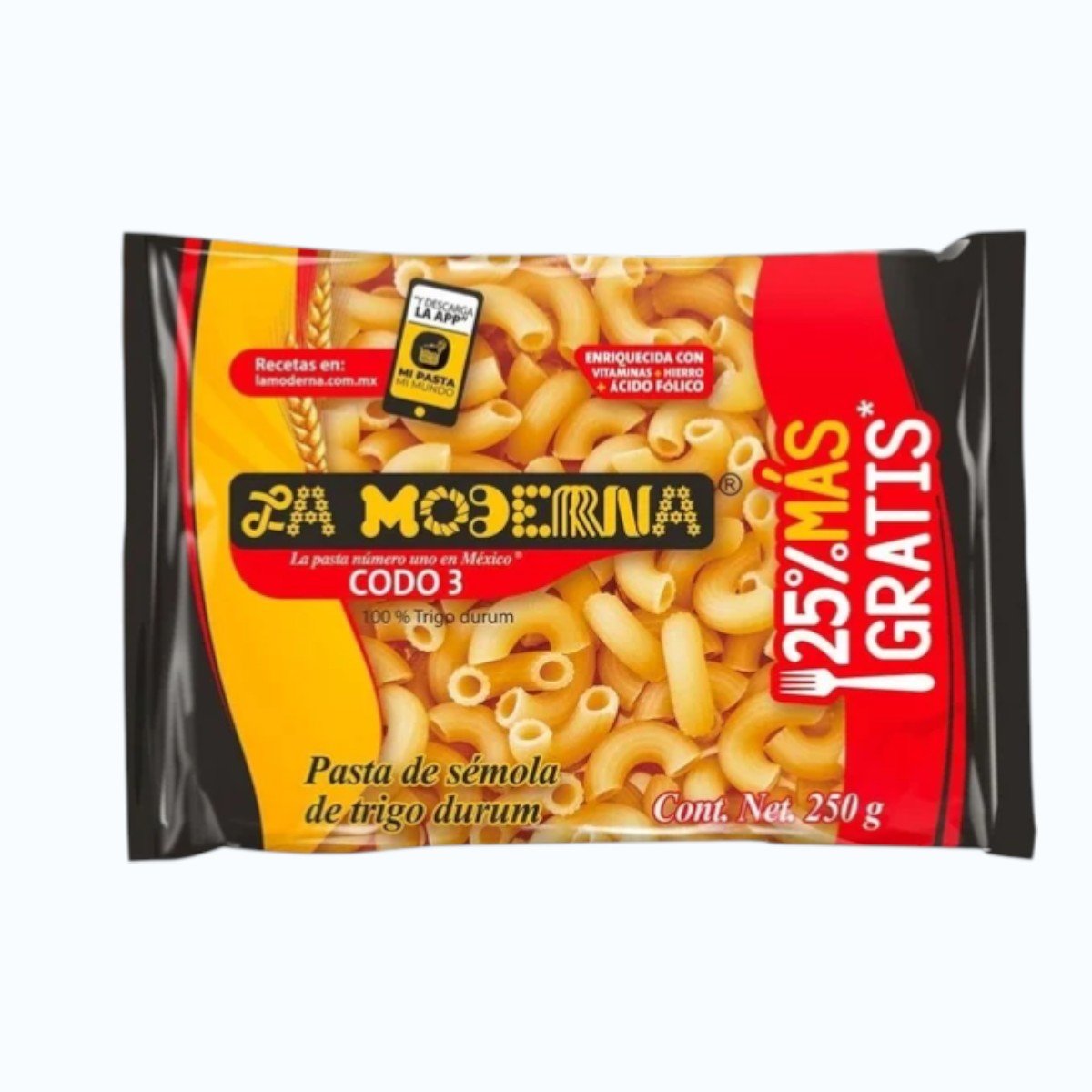 🍝 Sopa de Pasta La Moderna Codo No. 3 250 g – $15 MXN