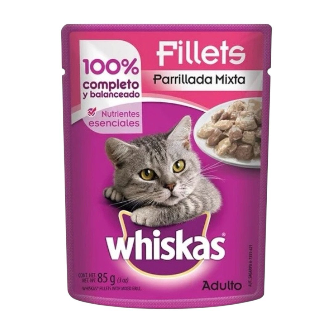 La alimentación adecuada es fundamental para el bienestar de cualquier mascota, y Whiskas Adulto Fillets Parrillada Mixta de 85g ha sido formulado específicamente para satisfacer las necesidades nutricionales de los gatos adultos. Este alimento está cuidadosamente elaborado para proporcionar una dieta equilibrada que favorezca la salud y el bienestar general de tu felino.